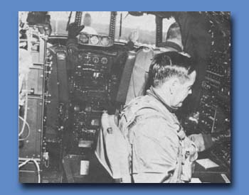 FLYING HIGH__LTJG Pinto shoots star to check plane's position. Rt.: Cockpit crew readys for take-off to Argentia.